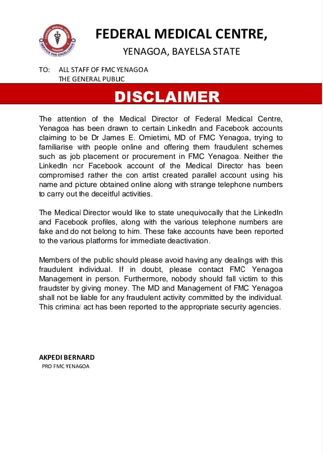 • PRESS RELEASE ON THE CASE OF OGECHI GIFT OKECHUKWU, A PATIENT THAT WAS AT THE FMC YENAGOA